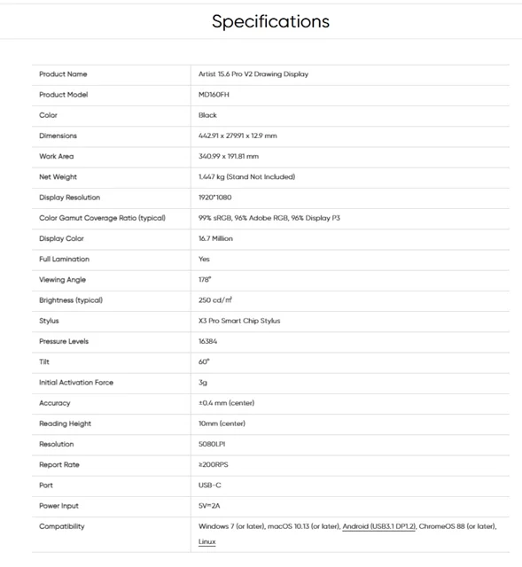 ویژگیهای برجسته XP-Pen Artist 15.6 Pro V2
