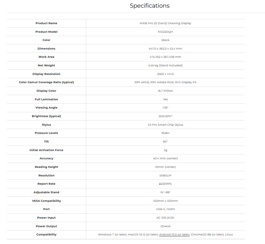 ویژگیهای کلیدی تبلت طراحی XP-Pen Artist Pro 22 (Gen 2)