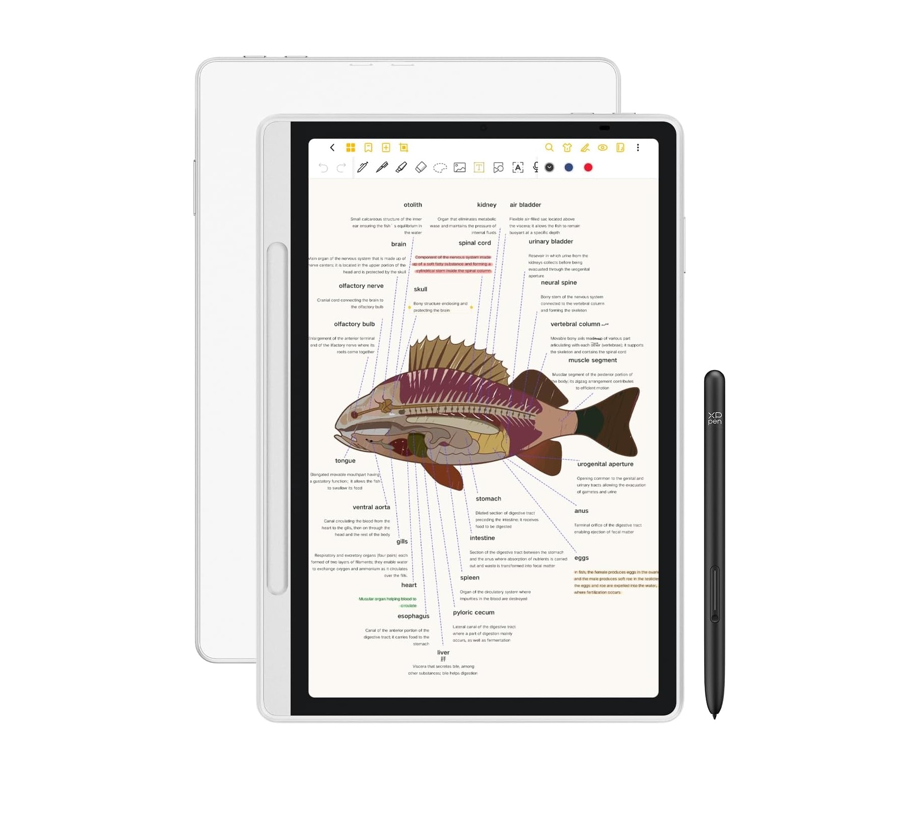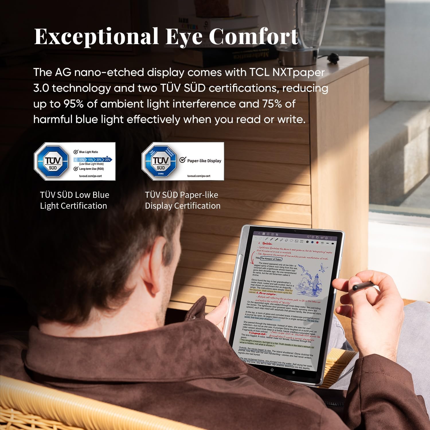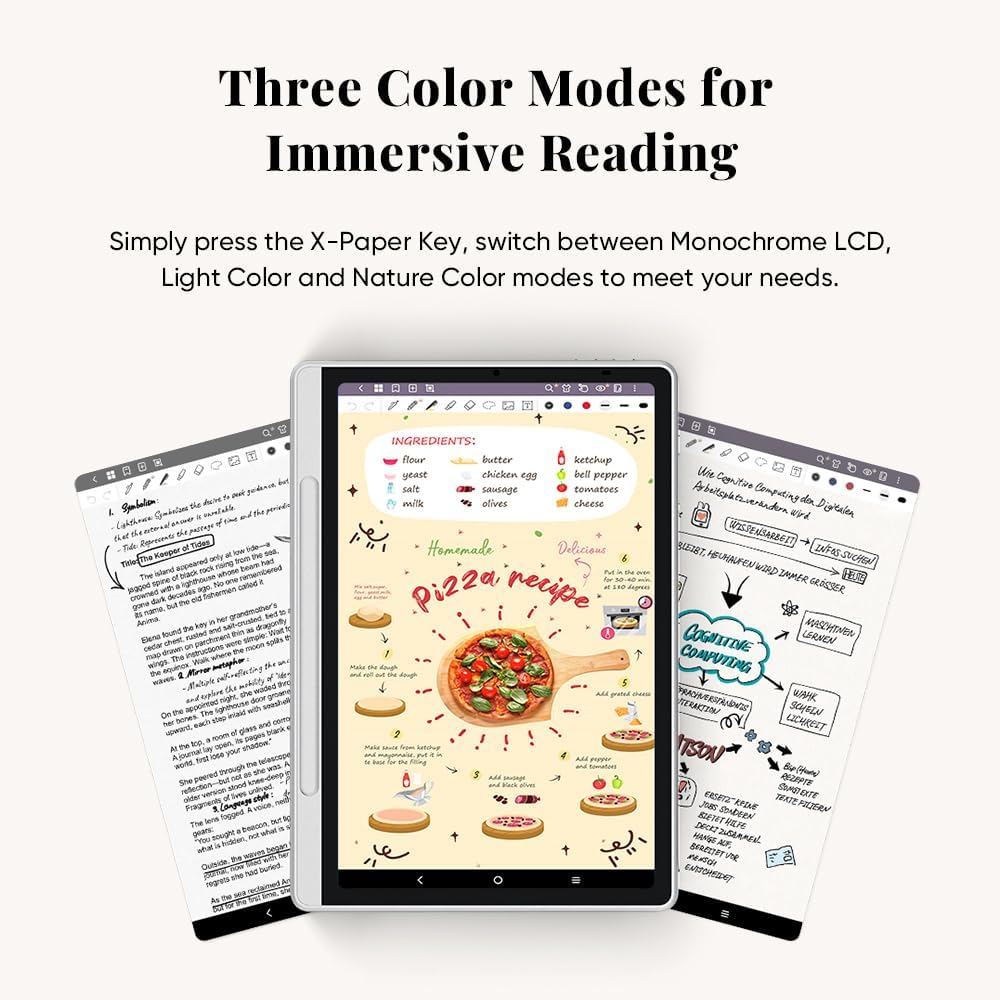 - نمایشگر X-Paper: شبیه کاغذ واقعی بدون آسیب به چشمیکی از برجستهترین ویژگیها، نمایشگر 10.95 اینچی X-Paper است که با فناوری AG Etched Glass ساخته شده. این نمایشگر، حس نوشتاری طبیعی روی کاغذ را شبیهسازی میکند و نور آبی مضر را تا 99% فیلتر میکند. نرخ تازهسازی 90 هرتز تضمین میکند که خطوط بدون تأخیر و لرزش ظاهر شوند، و پشتیبانی از 16.7 میلیون رنگ، آن را برای نقاشی دیجیتال ایدهآل میسازد. در مقایسه با تبلتهای معمولی، این ویژگی خستگی چشم را به حداقل میرساند – ایدهآل برای جلسات طولانی یادداشتبرداری یا طراحی.